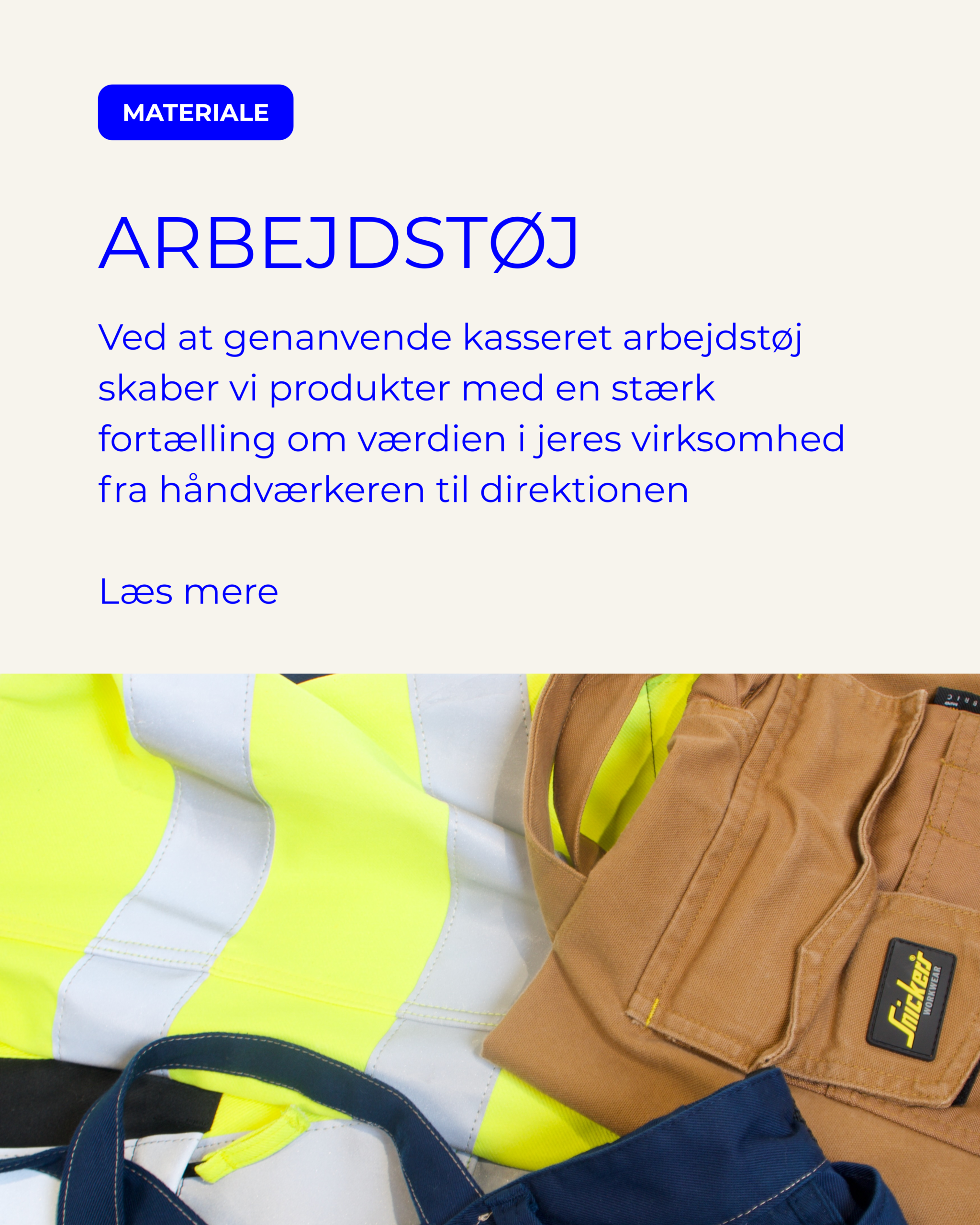 Desuden tilbyder vi, at genanvende kasseret tøj- og tekstil direkte fra jeres virksomhed.