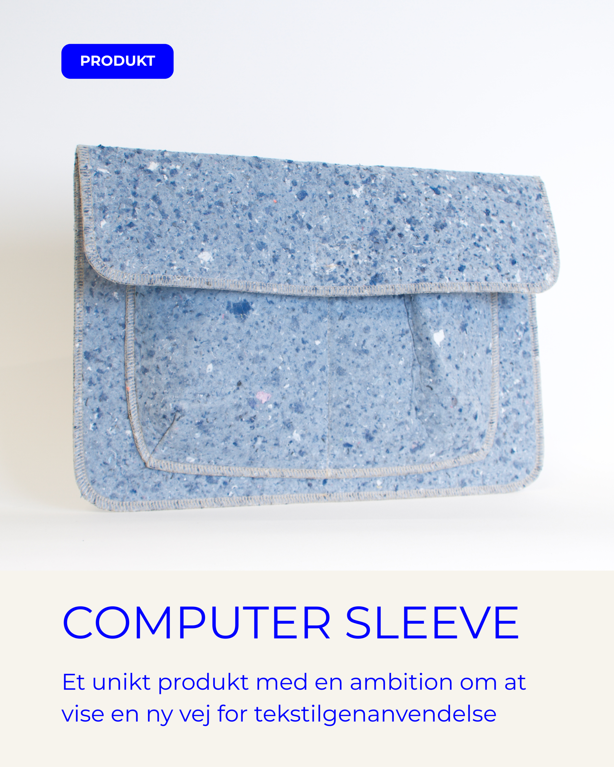 Vi tilbyder en række produkter syet af genanvendte materialer, der vil have en mindre påvirkning på miljøet i sammenligning med produkter syet af ny-producerede materialer.