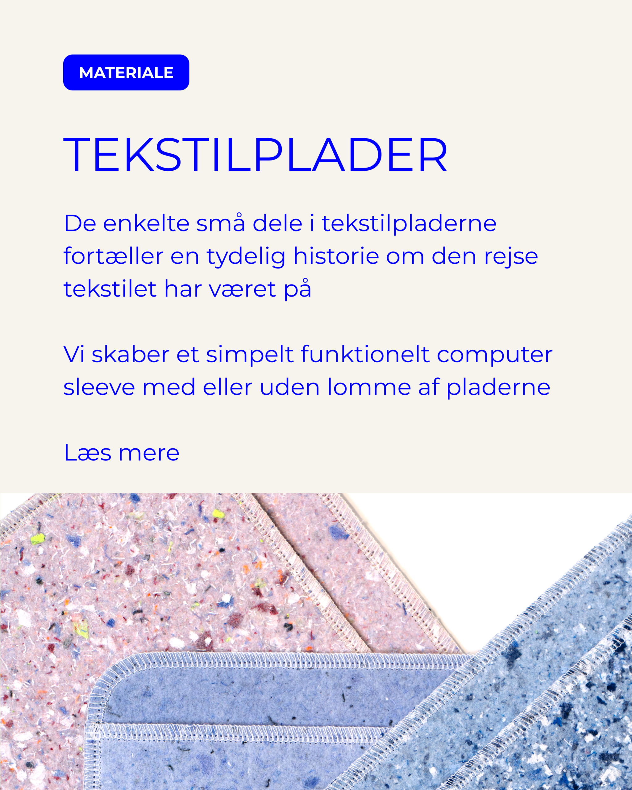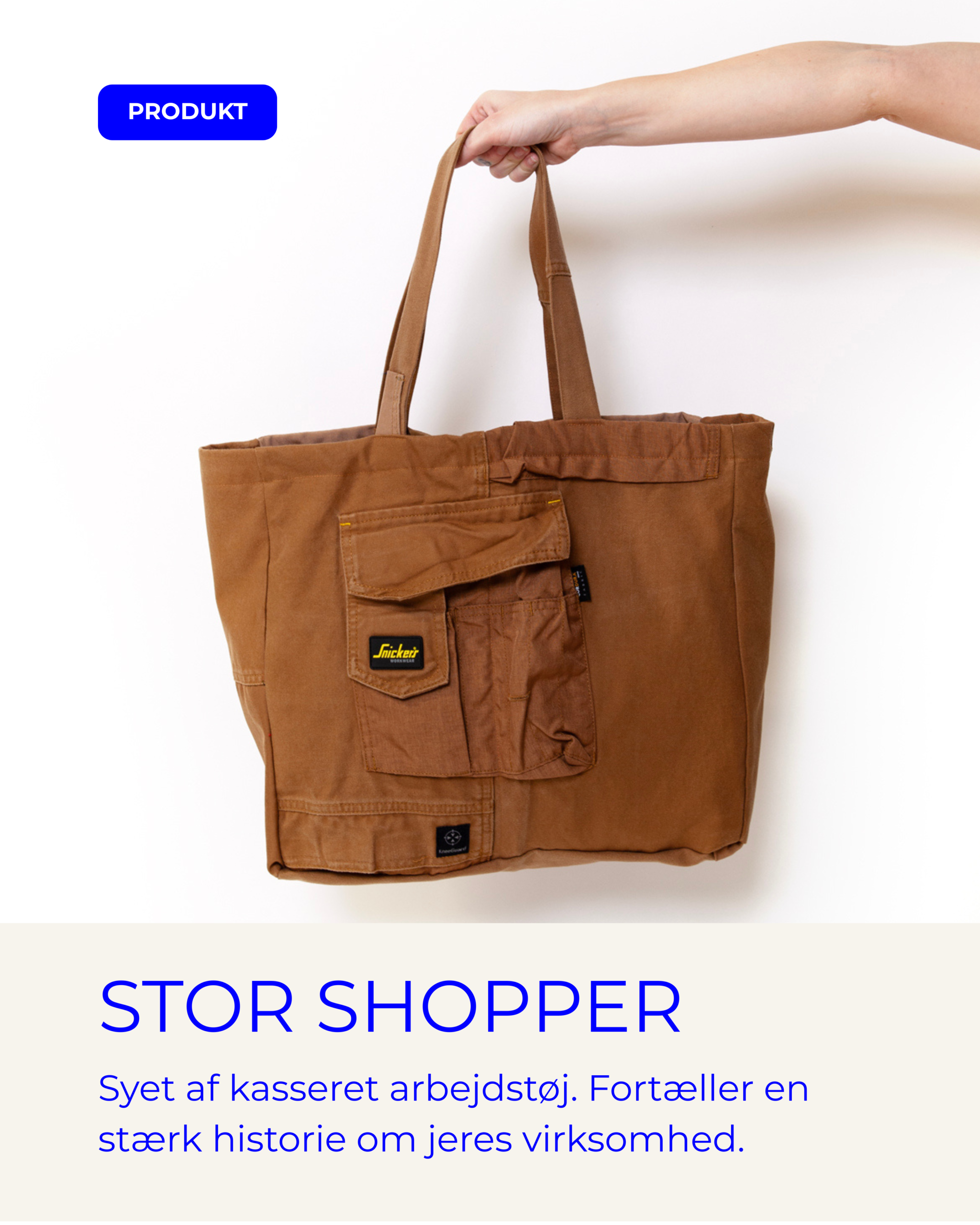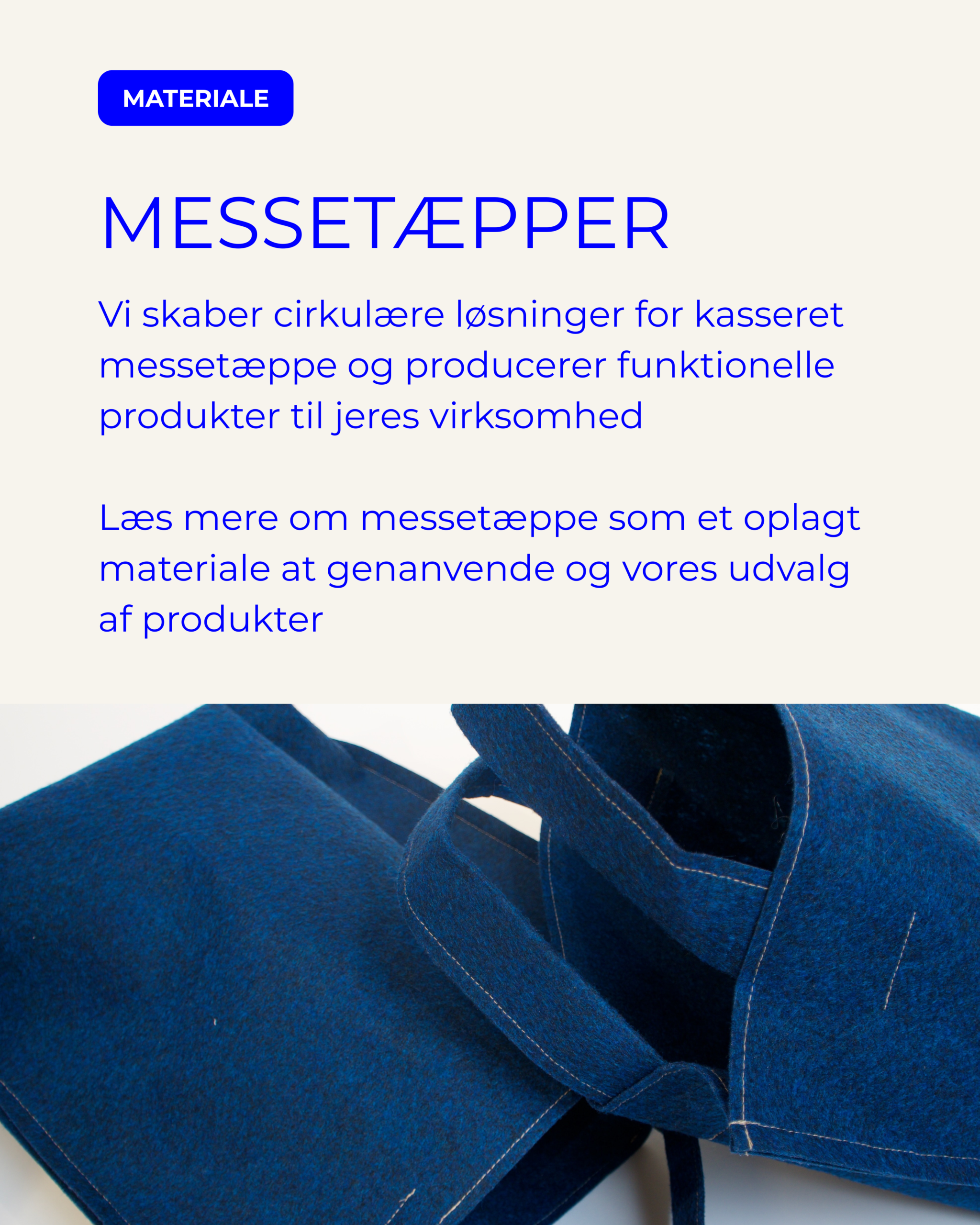 Vi tilbyder muligheden for at få syet vores produkter i jeres egne kasserede tekstiler, eller udvikle jeres helt eget unikke produkt i samarbejde med os.