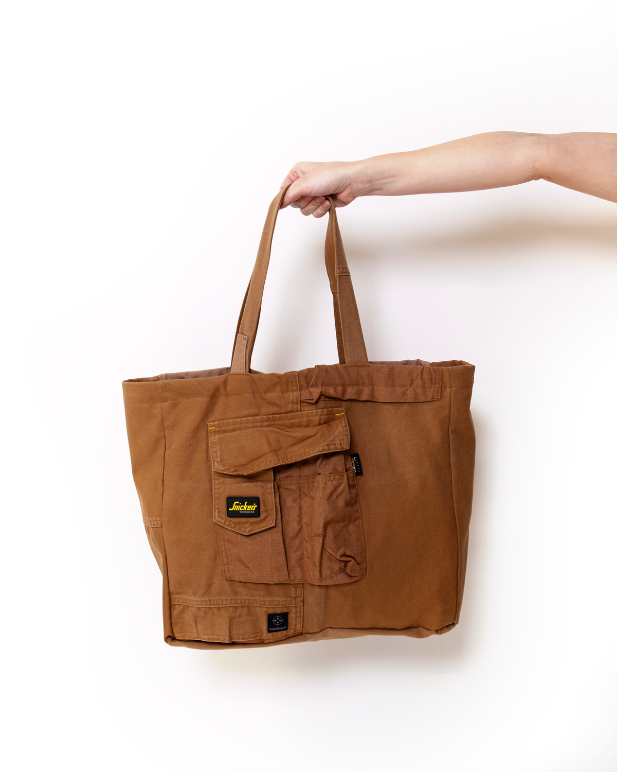 Stor rummelig taske med to indvendige lommer. God som tasken, der samler det hele: Arbejdscomputeren og alt det andet du gerne vil have med dig på farten. To kraftige hanke, ombukket øvre kant.